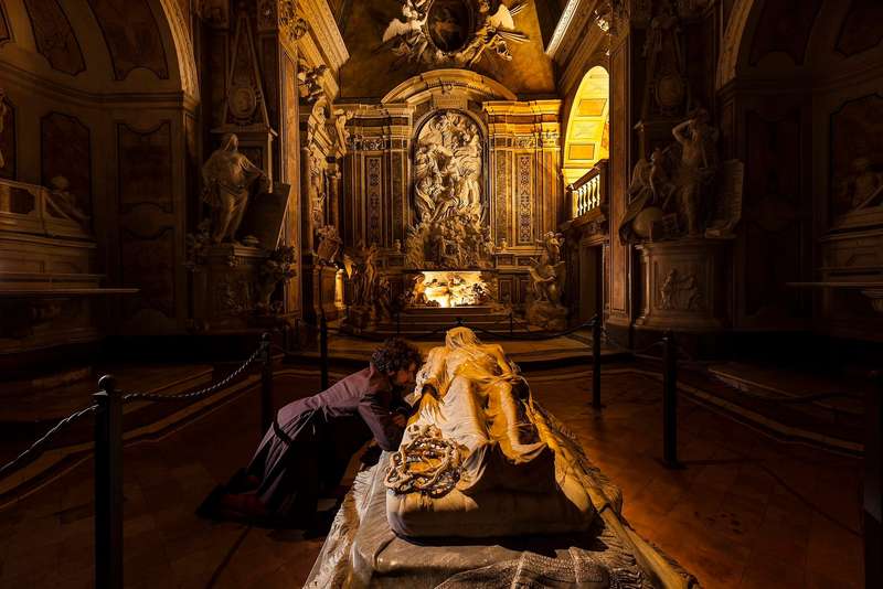 • Marvel at the stunning sculpture of Christ draped in a delicate veil, a masterpiece by Giuseppe Sanmartino.